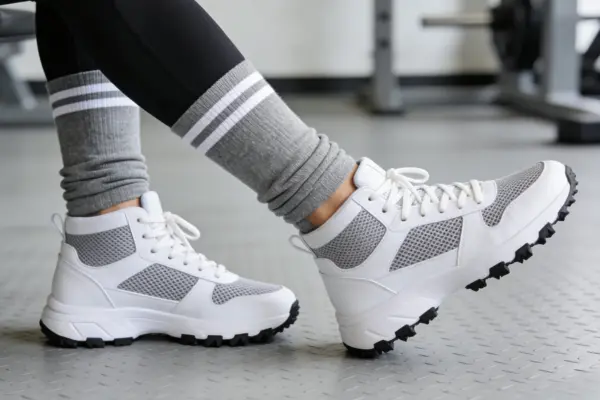 - White crew socks offer a classic athletic look, great with leggings and sneakers.