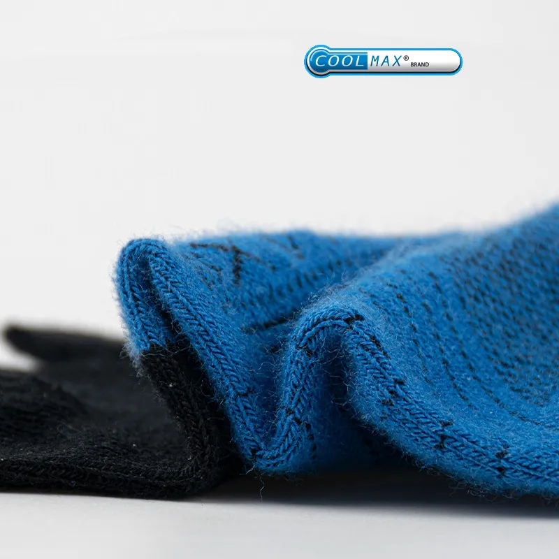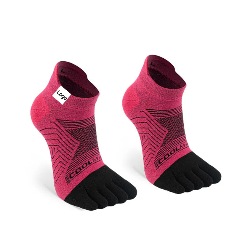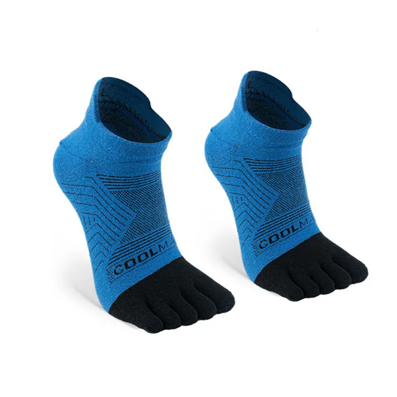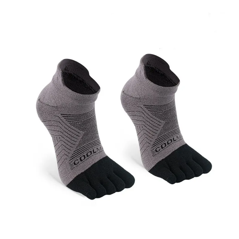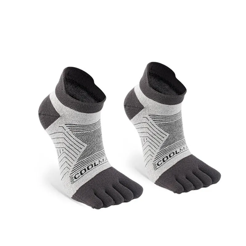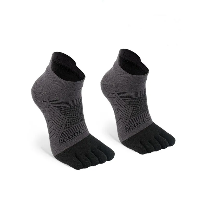 These toe socks are made of CoolMax fabric, with targeted compression for support. They wick moisture, reduce friction, prevent blisters, and keep feet cool and dry during high-intensity activities.