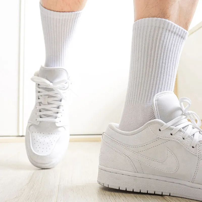 These white ribbed crew socks are engineered for enhanced fit, comfort, and everyday reliability.