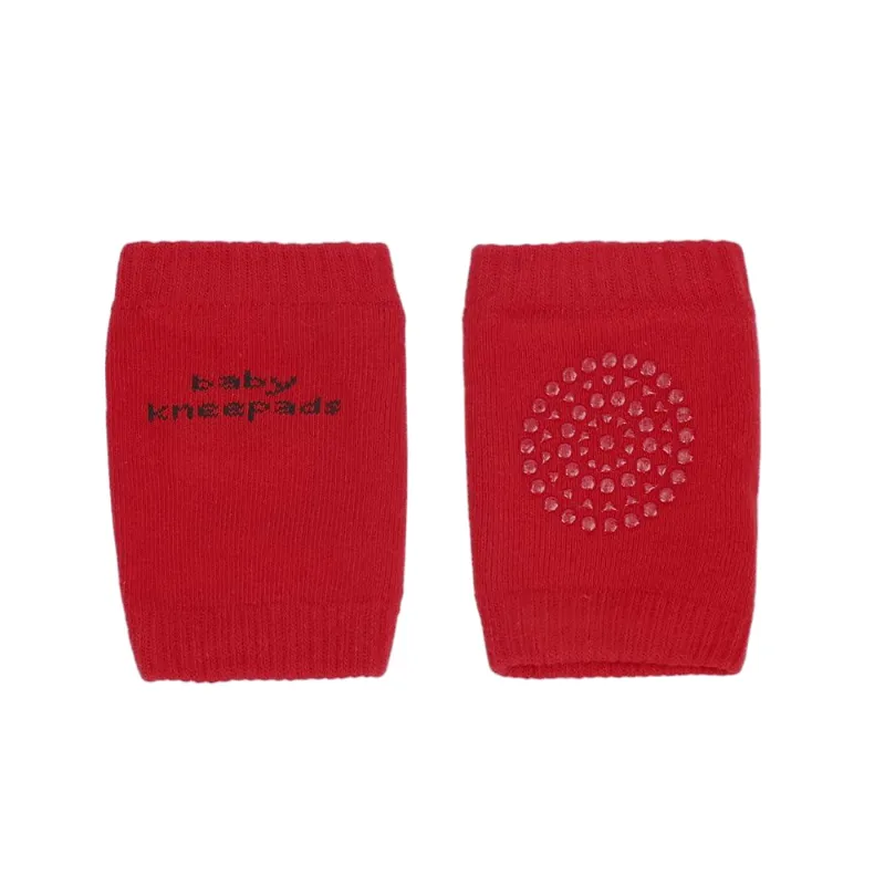 These bright red baby kneepads feature non-slip silicone grips for safety. The soft, stretchy knit offers gentle cushioning and a secure fit, protecting little knees during crawling and playtime without restricting movement.