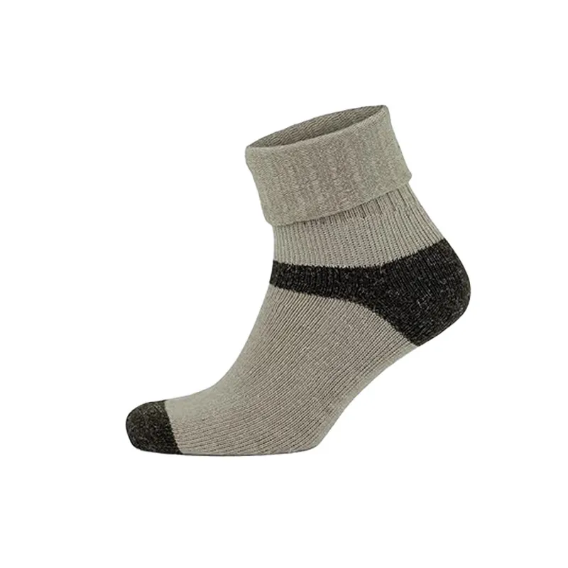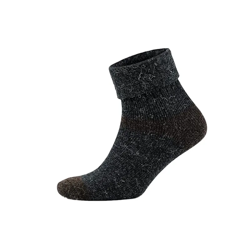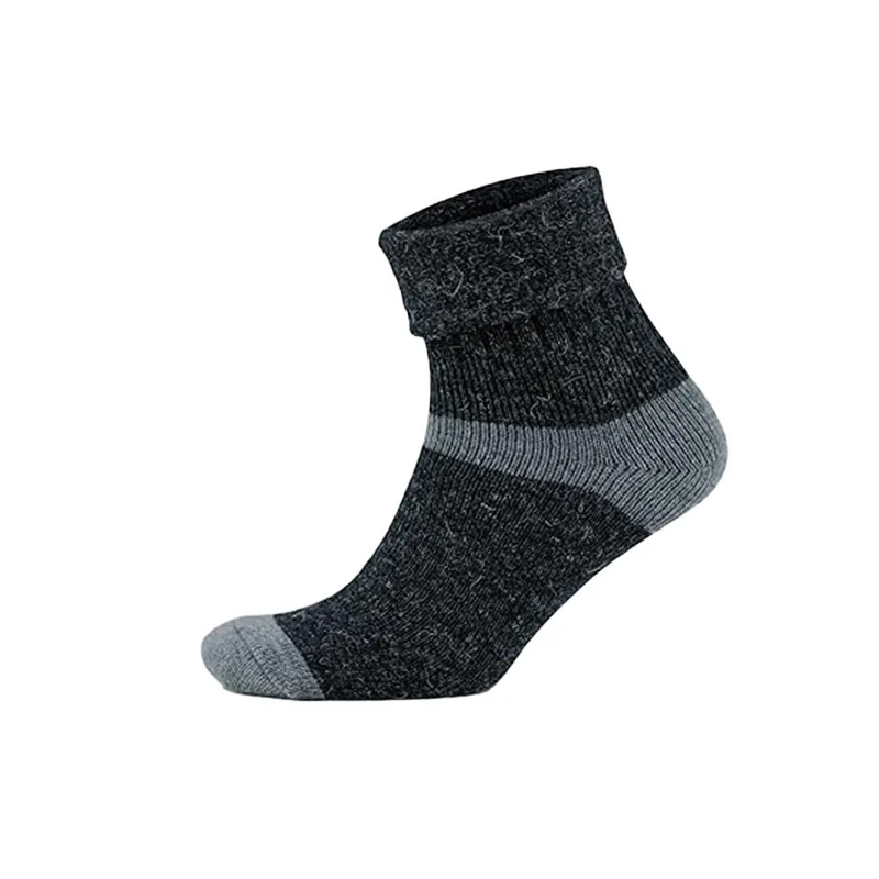These fold-over cuff alpaca ankle socks offer customizable fit and gentle warmth. The soft alpaca blend insulates without overheating, while reinforced toe/heel boosts durability for all-day casual comfort.