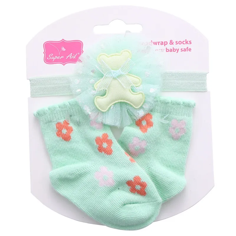These adorable baby socks come with a matching headband set, featuring cute floral patterns and a teddy bear detail. The soft, stretchy knit ensures gentle comfort for delicate skin, while the ruffled cuff adds a charming, playful touch perfect for gifting.