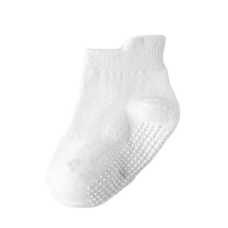 These light pink newborn socks feature non-slip silicone grips for safety. The ultra-soft, breathable knit is gentle on delicate skin, while the stretchy cuff ensures a secure, comfortable fit for tiny growing feet.