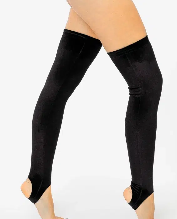 These stirrup socks feature ribbed stretch fabric, a non-slip heel loop, and breathable material. They stay securely in place, offer flexible support, and keep legs warm during yoga, dance, or workouts.