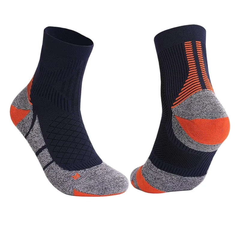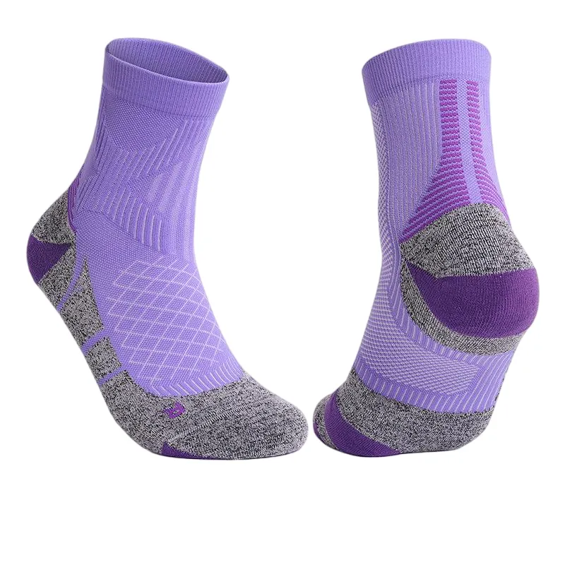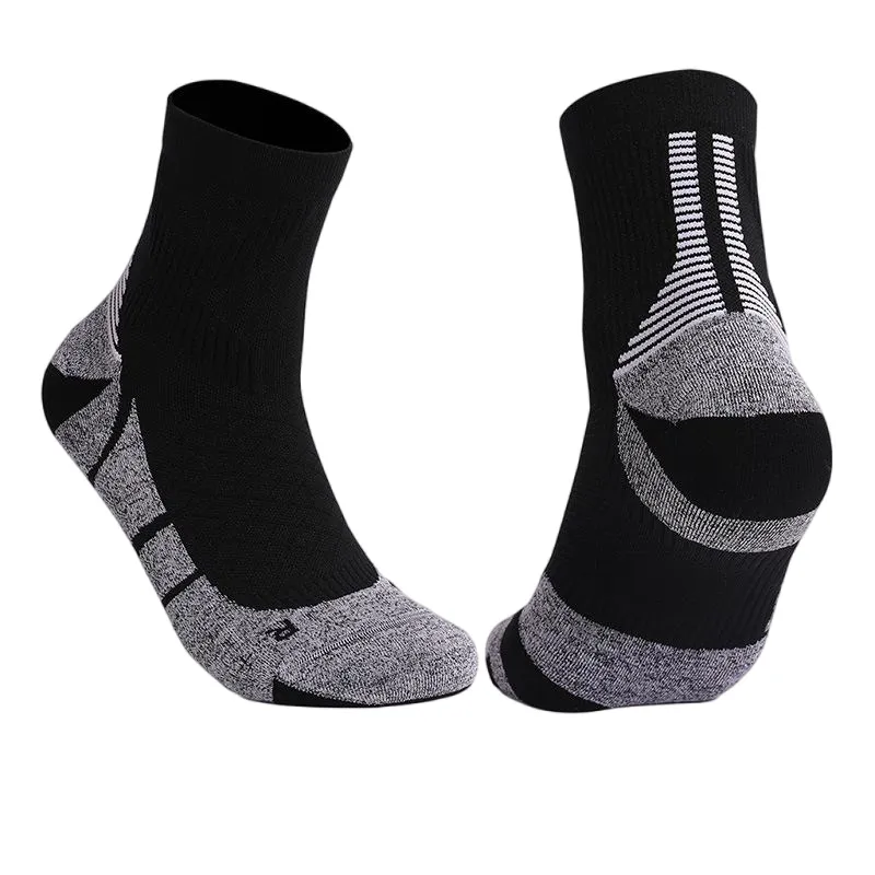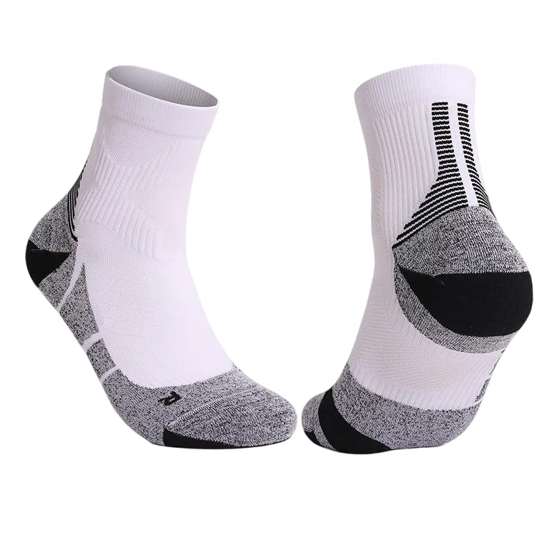 These quarter running socks feature 3D arch support and reinforced heel/toe for durability. Breathable mesh panels enhance ventilation, while moisture-wicking fabric keeps feet dry and prevents blisters during runs.