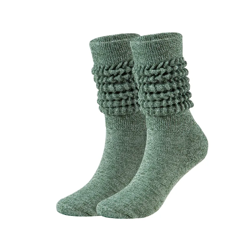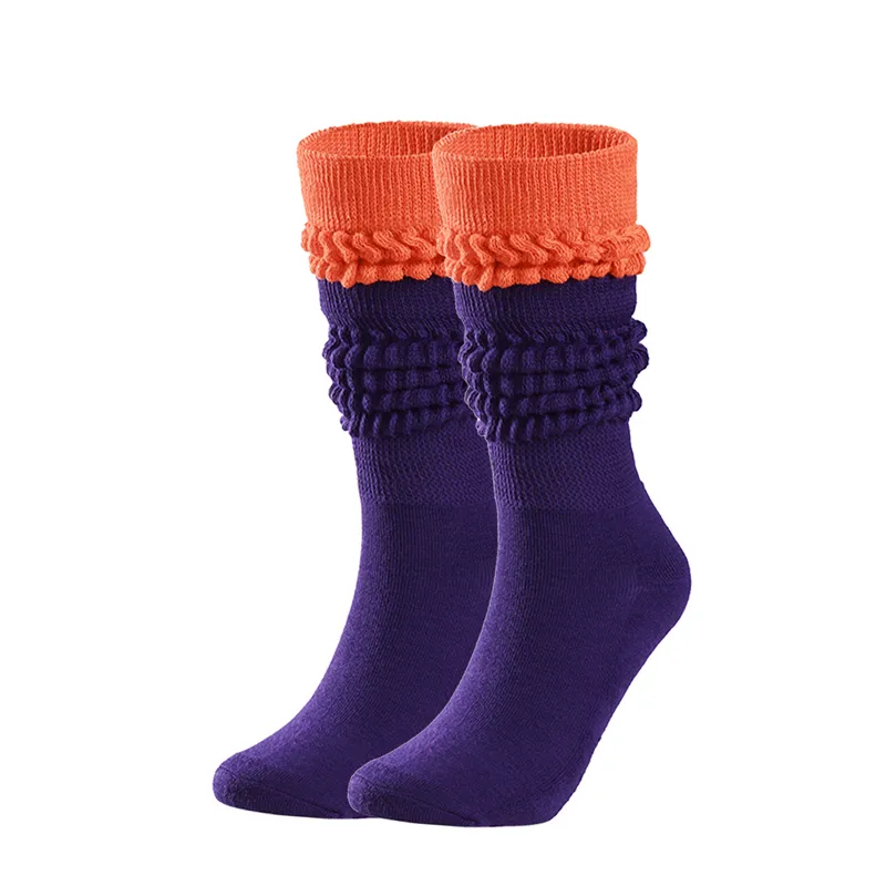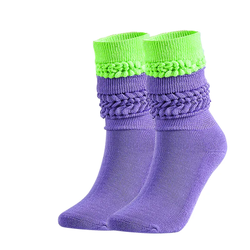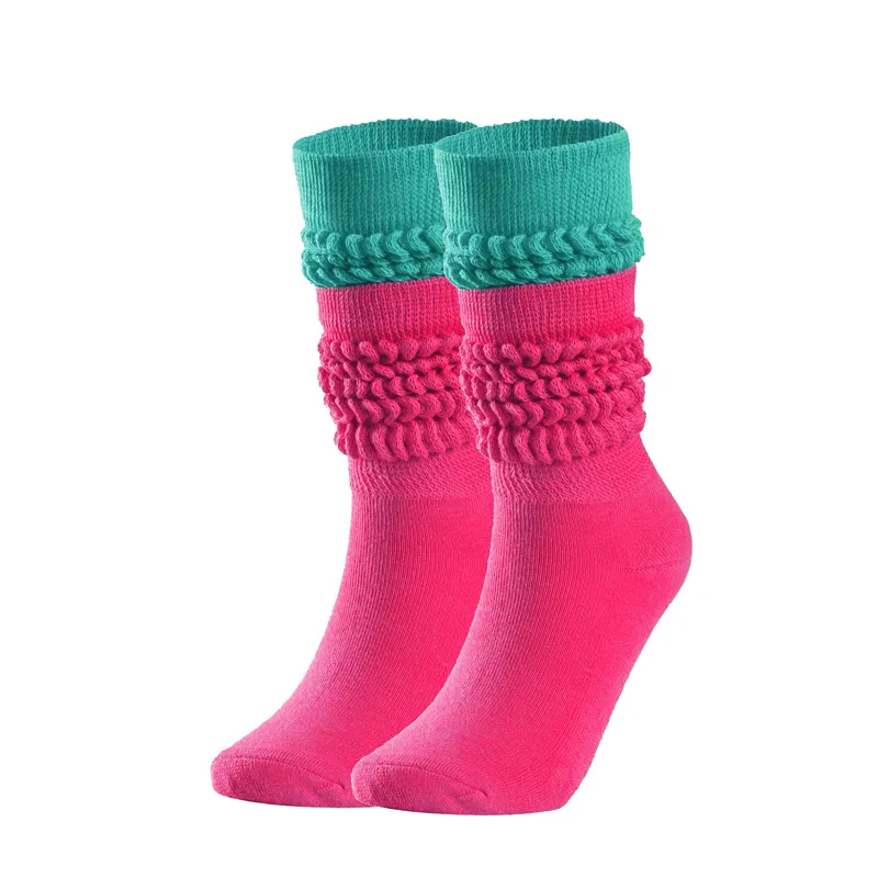 These vibrant colors slouch socks feature a contrasting teal turn-down cuff and a playful textured design. The soft, stretchy knit delivers cosy comfort, while the loose, relaxed fit offers a trendy, effortless look perfect for pairing with boots or sneakers.
