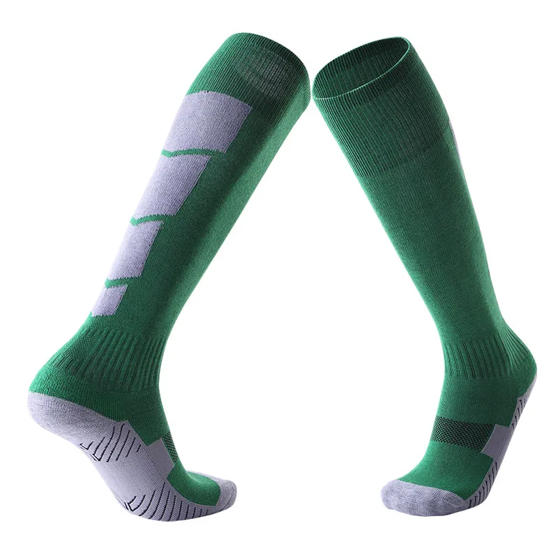 This multi-color over-the-calf football sock set offers vibrant team-ready hues. The reinforced anti-slip sole and stretchy knit provide secure support, while moisture-wicking fabric keeps feet dry during intense matches.