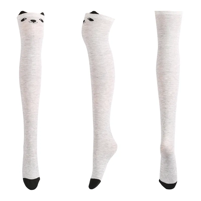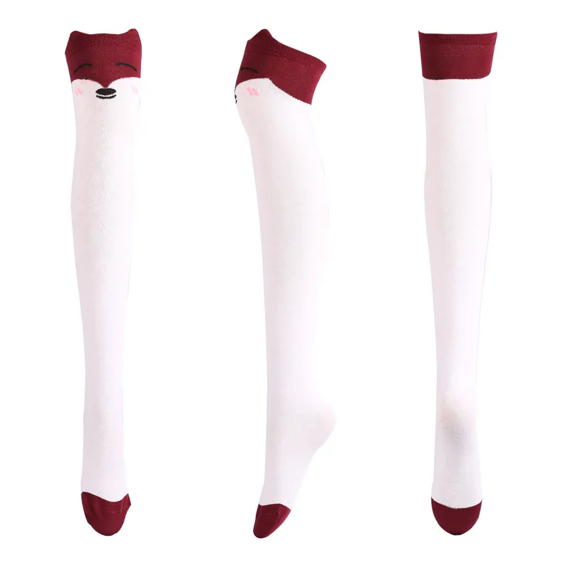 These over-the-knee socks feature a cute fox face design with maroon accents for playful charm. The smooth, stretchy knit delivers a snug fit, while the lightweight fabric ensures breathable comfort for casual or costume wear.