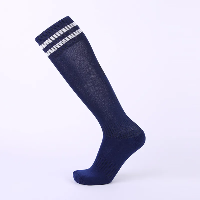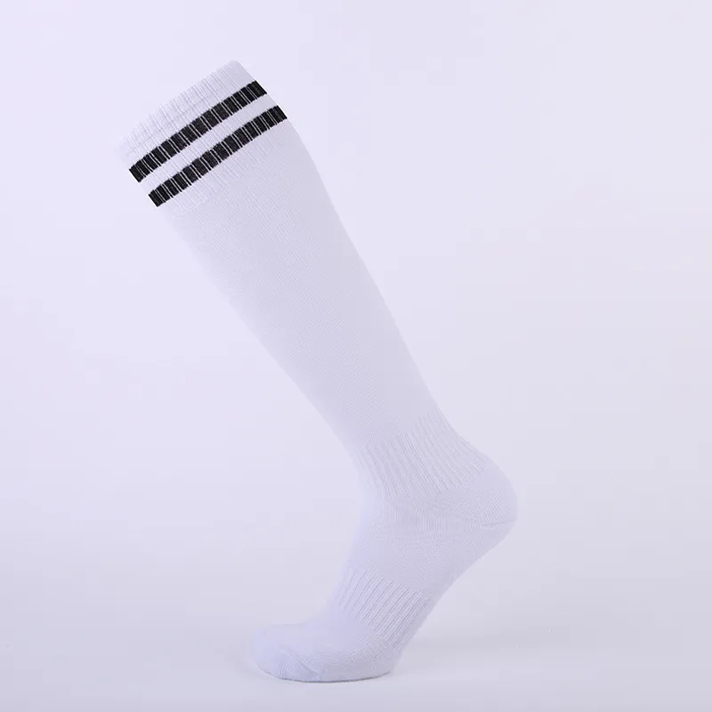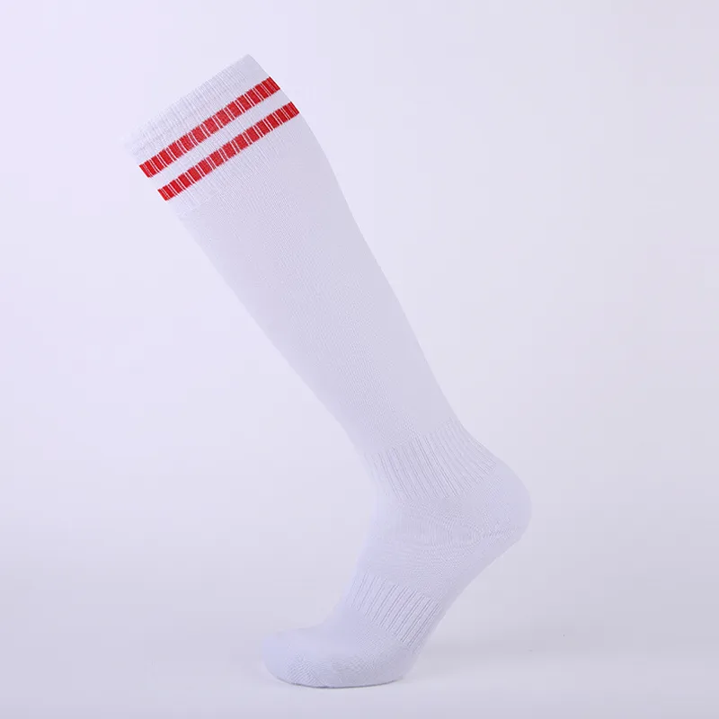 This over-the-calf soccer socks features two crisp white striped cuffs. The breathable mesh panels and reinforced heel/toe offer durability, while the stretchy knit ensures a secure fit for match-day performance.