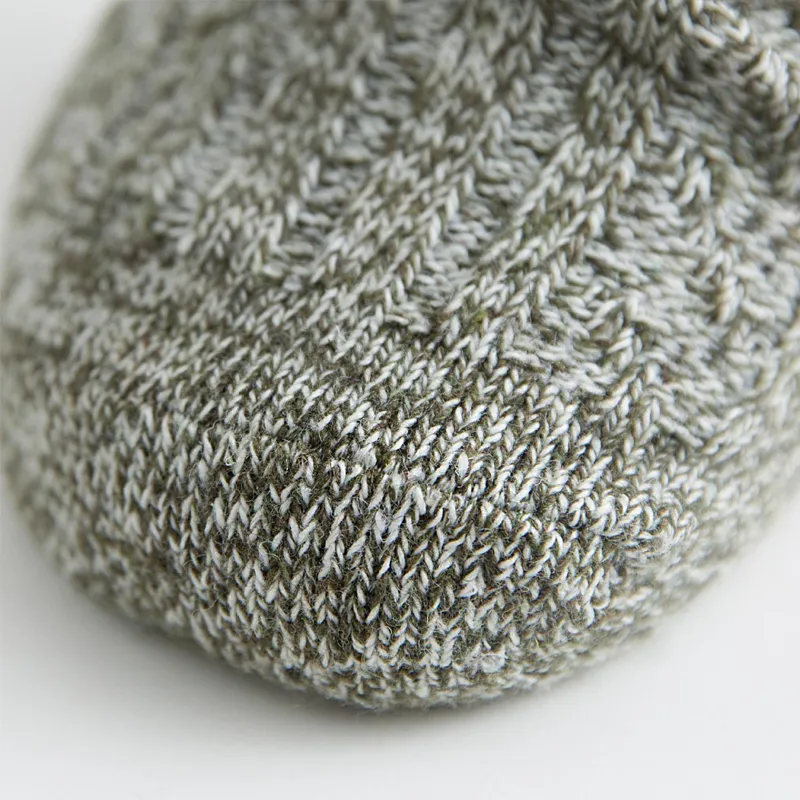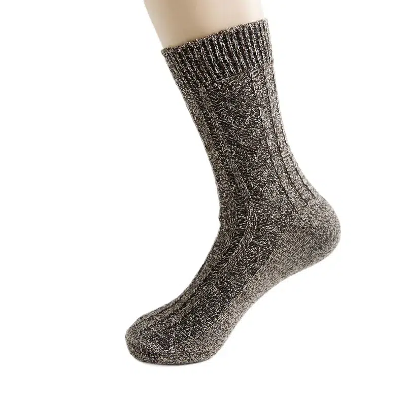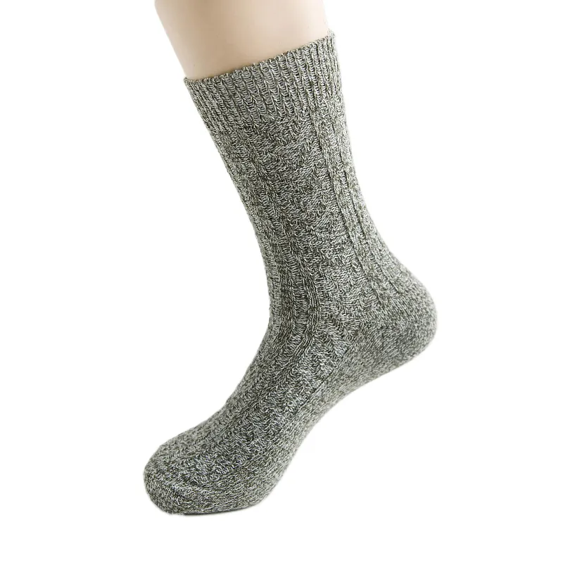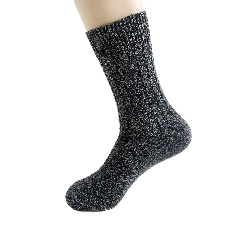 These ribbed wool crew socks offer natural insulation and breathability. The thick knit traps heat effectively, while reinforced heel/toe boosts durability, making them ideal for cold weather and daily wear.