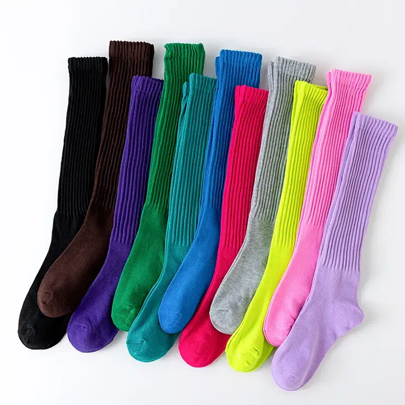 These are trendy slouchy mid-calf socks defined by their ruched/gathered ribbed cuffs and a range of vibrant, solid color options (including bright neons, soft pastels, and neutral tones), blending casual flair with comfortable versatility.