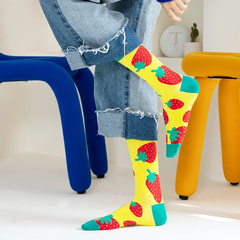 These socks stand out with cheerful fruit-themed prints (covering pineapples, kiwis, lemons, coconuts, watermelons, bananas, avocados, apples, strawberries, etc.), infusing outfits with a fresh, lively vibe.
