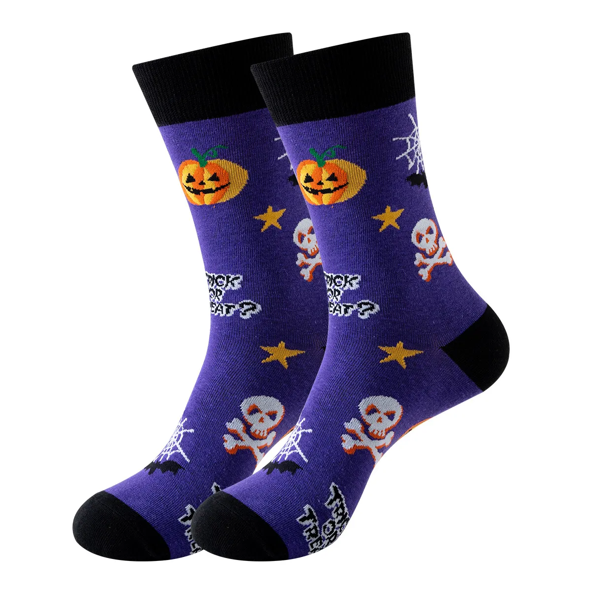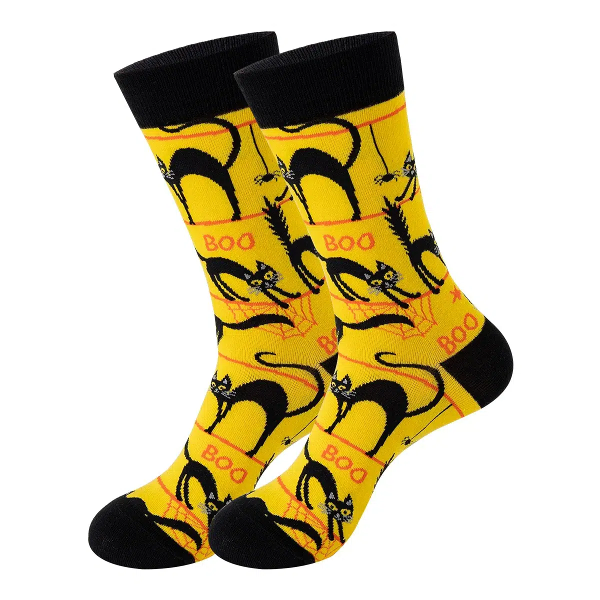 These socks are vibrant Halloween-themed mid-calf styles packed with classic spooky-fun motifs (including pumpkins, skeletons, ghosts, black cats, bats, and “Happy Halloween” slogans), making them the perfect accessory for the Halloween season.