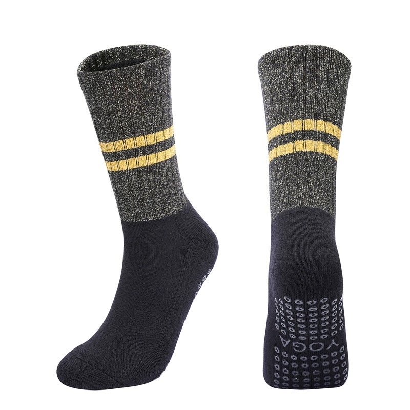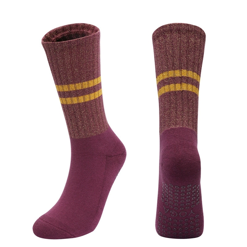 These shimmery metallic-thread yoga dance invisible socks have crisscross straps (staying put) and non-slip dots (boosting grip for yoga). Breathable fabric keeps feet dry; their invisible fit suits flats. They blend a shiny, stylish look with comfort and stability for light workouts.