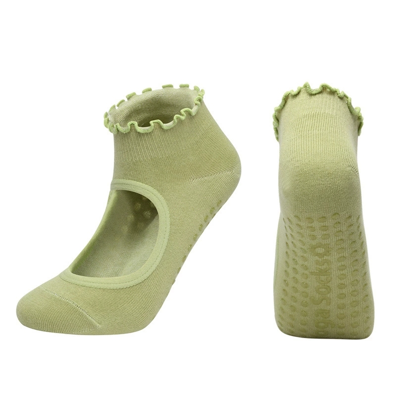 These Pilates socks have non-slip dots for strong grip, preventing slips during workouts. Elastic ankle bands ensure a snug, stable fit. Breathable fabric keeps feet dry. Made for Pilates/yoga, they merge comfort, stability, and durability for light exercise.