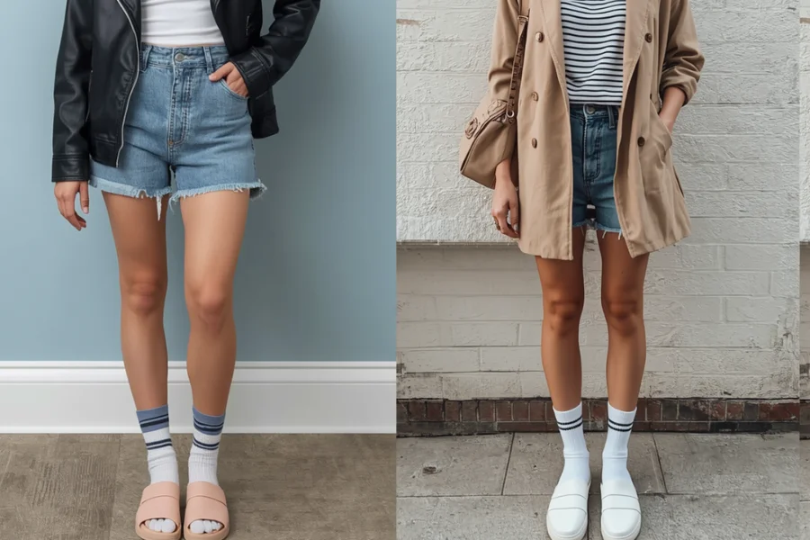 Choose a clean pair of slides, add well-fitted socks, and build your outfit around that combination. Small changes in color and fit can completely change how this look feels.