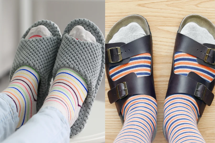 Socks reduce friction and help prevent blisters when wearing slides for long periods.